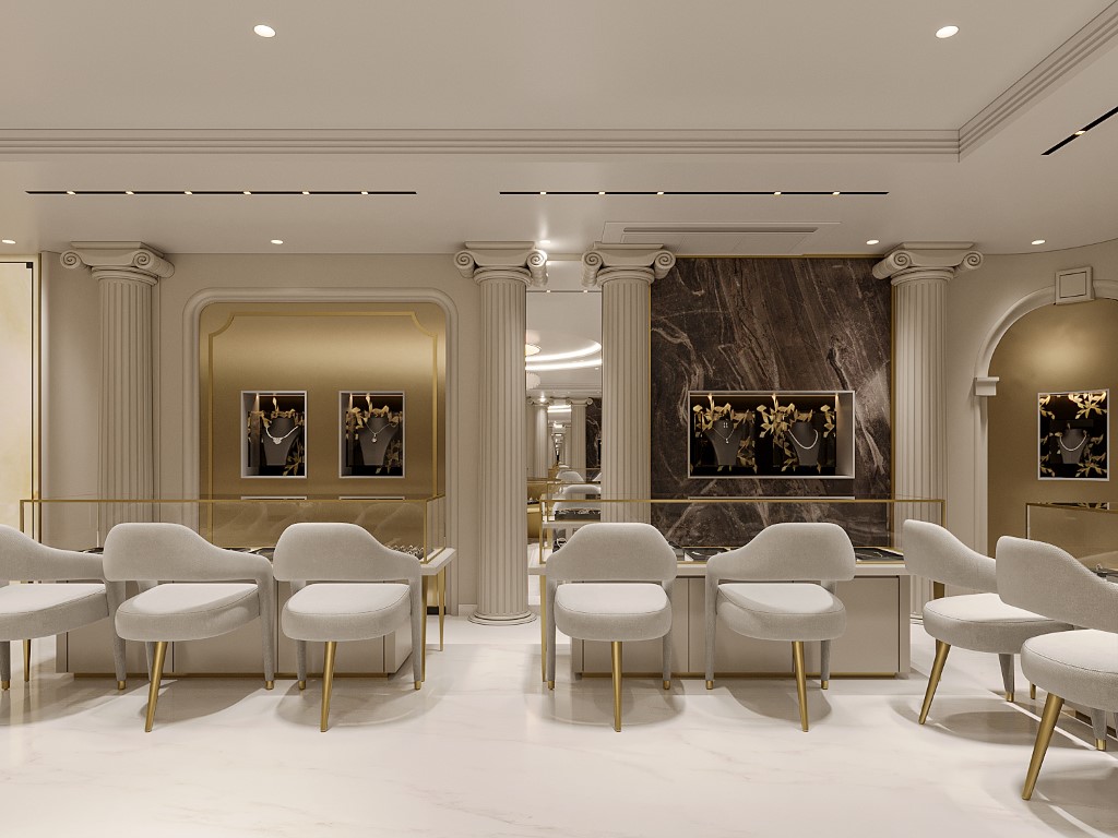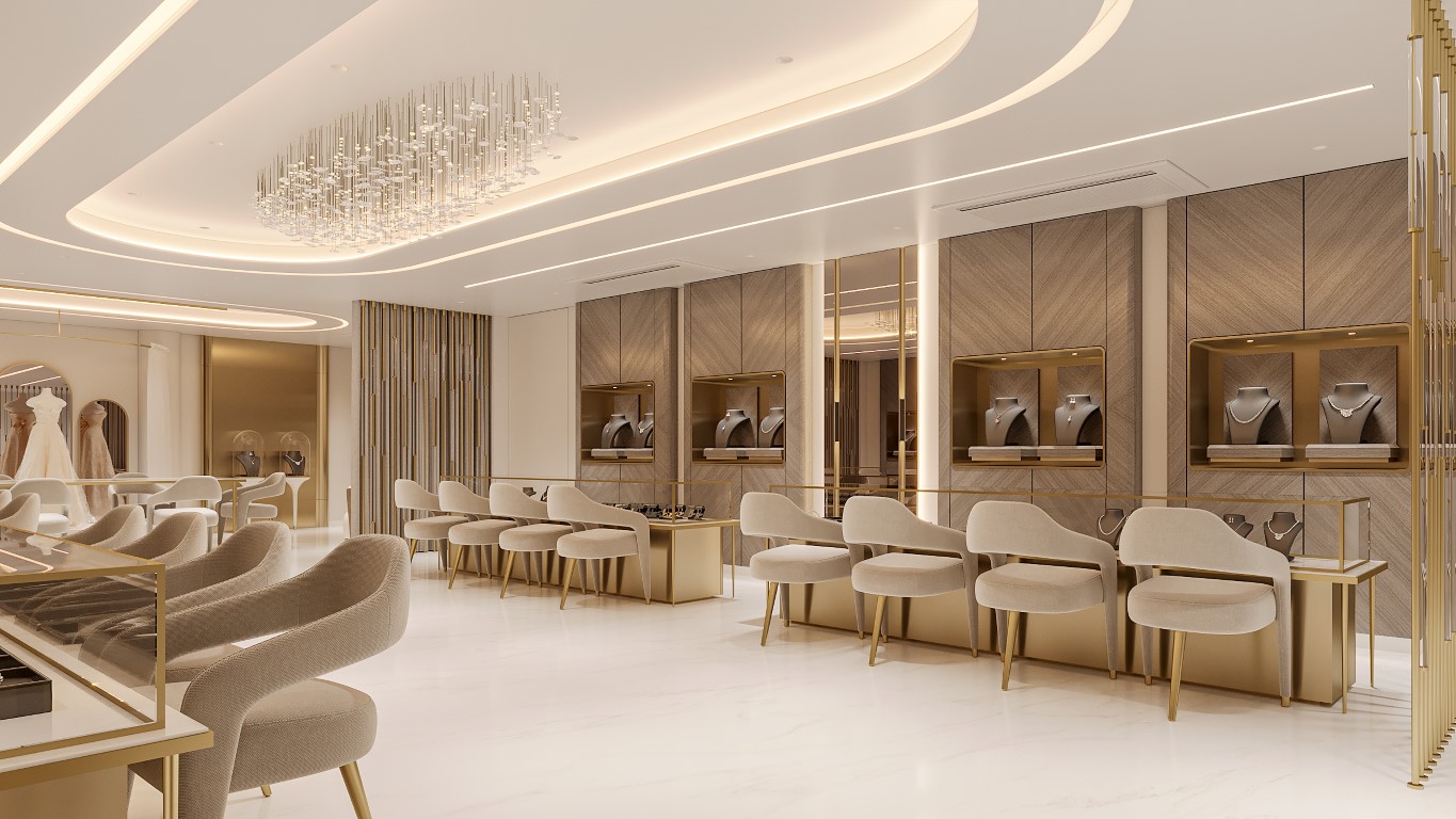 The design of BNR Luxe is a seamless blend of modern aesthetics and opulent touches, creating an inviting and luxurious shopping environment. A standout feature of this project is the exclusive VIP section, designed specifically to cater to celebrities and high-profile clients, providing a private and luxurious shopping experience.