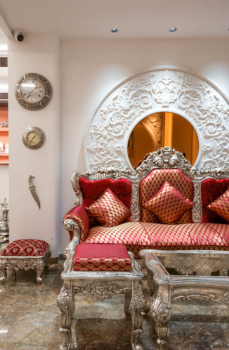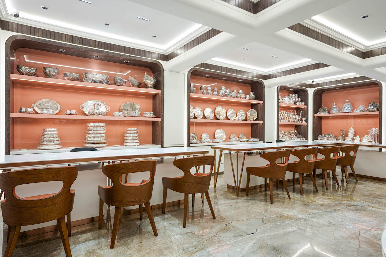 The interior design of Swarna Mahal features premium materials, bespoke fixtures, and carefully curated display areas that highlight the beauty and craftsmanship of the silverware. Every detail, from the lighting to the layout, has been thoughtfully considered to enhance the shopping experience for discerning customers.